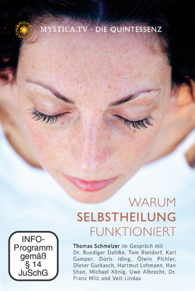 „Warum Selbstheilung funktioniert“ – so heißt die erste DVD der Reihe „MYSTICA TV – DIE QUINTESSENZ“. Was tun bei Ängsten, Blockaden, Burnout oder chronischen Krankheiten? Immer mehr setzt sich die Erkenntnis durch, dass dies viel mit unseren Gedanken und Gefühlen zu tun hat. Welche Methoden helfen uns, gesund zu werden und zu bleiben? Thomas Schmelzer sprach mit bekannten Ärzten, Therapeuten und Seelenberatern und erhielt wertvolle, manchmal verblüffende Antworten.