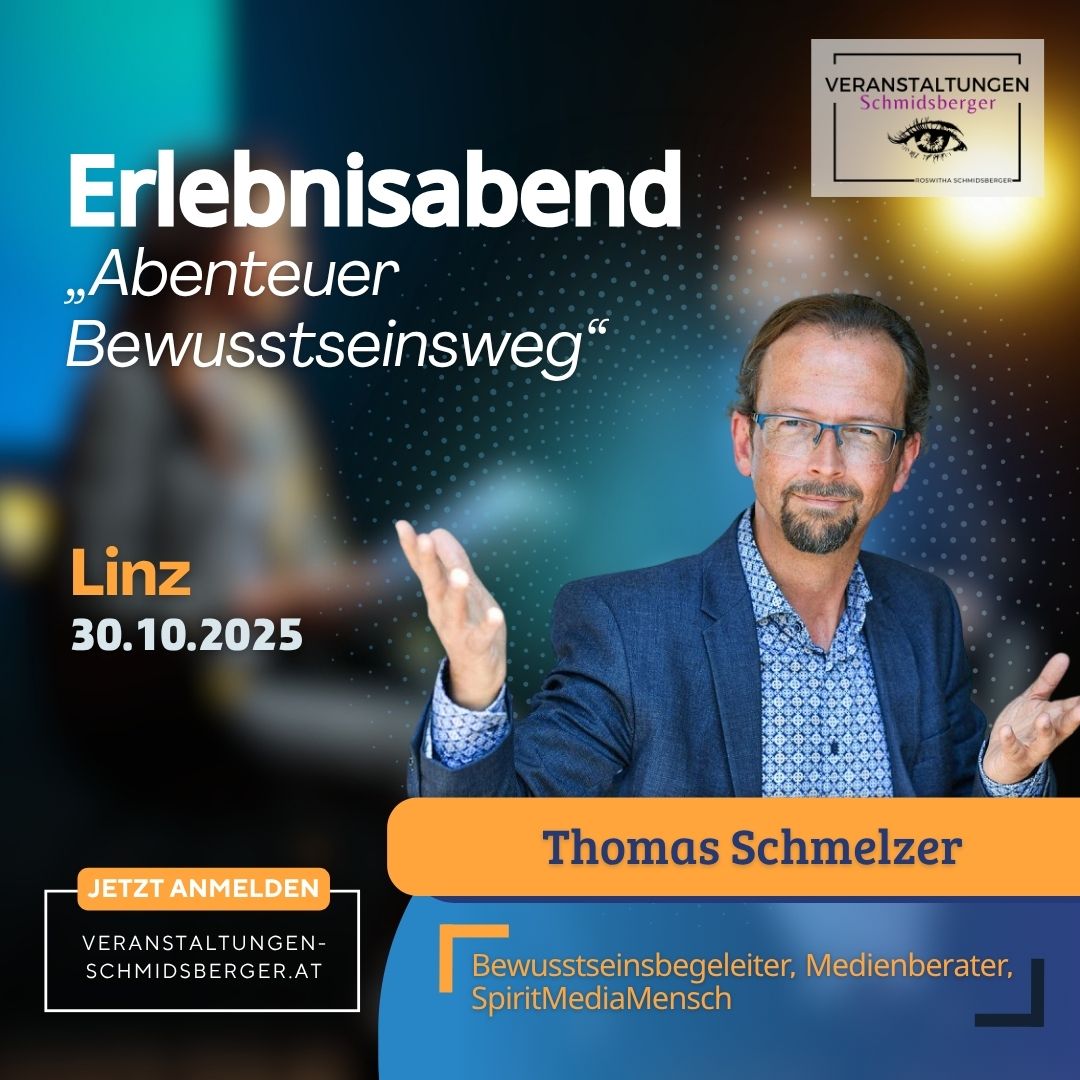 30. Oktober 2025: Vortrag: Erlebnisabend „Abenteuer Bewusstseinsweg“ in Linz, Veranstaltung Schmidsberger